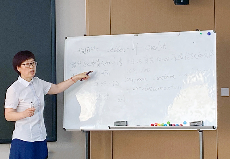 隨后,主講人對融資市場及主要融資品種進行講解,詳細區(qū)分解析了公司債券、企業(yè)債券、債務(wù)融資工具,并著重以集團投資企業(yè)——煙臺新能智慧產(chǎn)業(yè)園為例,講解了國際貿(mào)易結(jié)算工具信用證的使用和融資實務(wù),為便于理解,她在現(xiàn)場繪制了信用證業(yè)務(wù)流程圖。講授中,主講人不斷拋出問題,設(shè)置了有獎問答環(huán)節(jié),大家一直緊緊跟隨著她的節(jié)奏,認真聆聽,主動思考,深入探討交流。