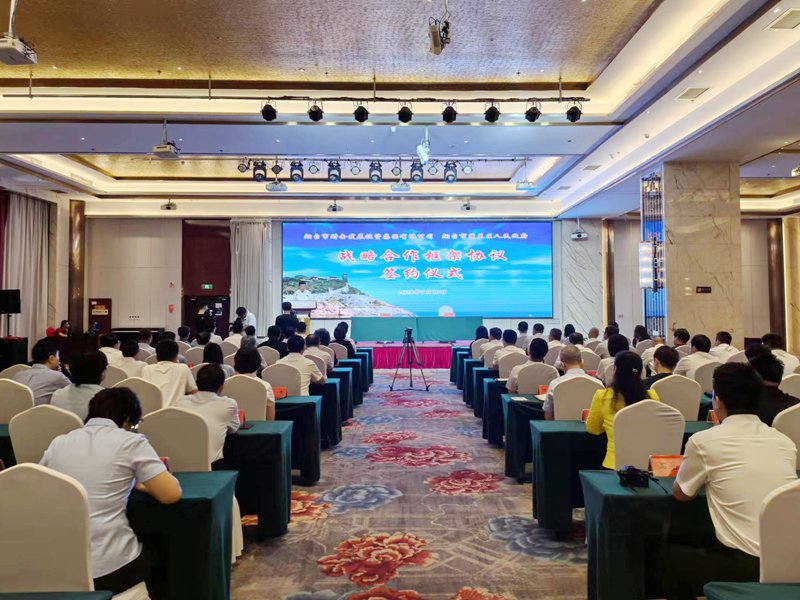 隨后,在與會全體領導的共同見證下,蓬萊區(qū)委常委、副區(qū)長田文良,煙臺財金集團黨委委員、副總經(jīng)理修兆強分別代表雙方簽訂戰(zhàn)略合作協(xié)議。